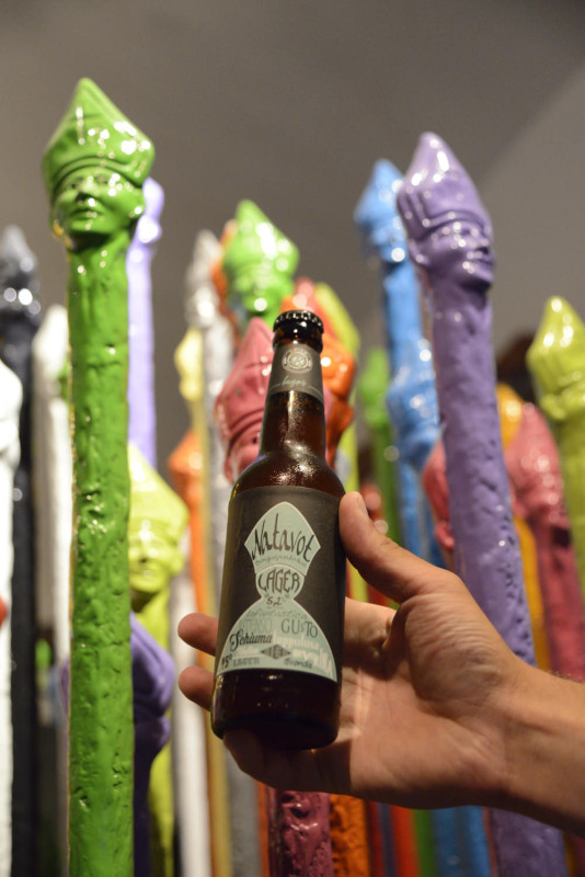 Nel ventre di Napoli, nelle scuderie di Palazzo Sansevero in piazza San Domenico Maggiore, il maestro partenopeo, che ha portato nel mondo l’immagine della città e i suoi simboli reinterpretando la tradizione, ha ospitato la presentazione di Natavot (Un’altra volta), una Lager che riporta sull’etichetta l’immagine stilizzata del santo patrono della città.